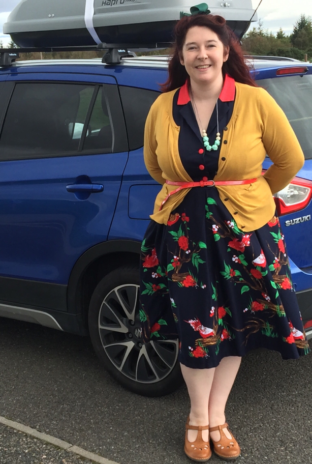 My suit is the wine colour in 3XL, I'm 5'5, a UK size 22 top, 20 waist and 38 HH boobs. I styled it with some retro heeled sandals from Gianni Bernini, a mustard cardigan from Dunnes stores and one of my own hand knitted hair snoods. How do you wear yours?